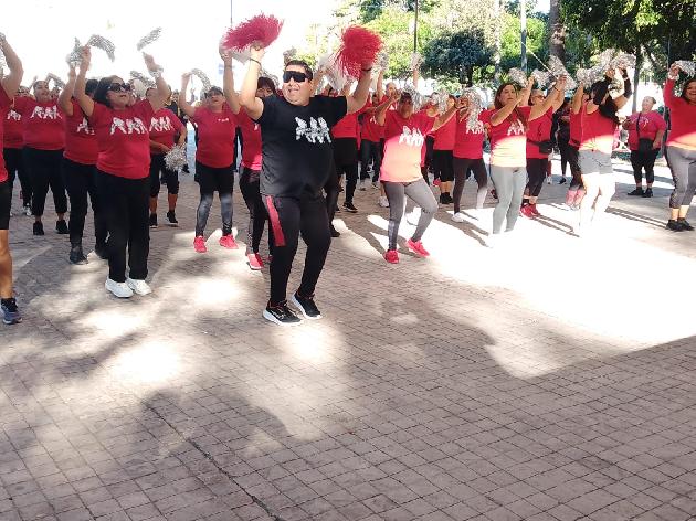 Predicando con el ejemplo, al intervenir en el repertorio aeróbico musical, Lorena Zapata Medina, secretaria de Bienestar Social, dio realce a la celebración con su presencia.